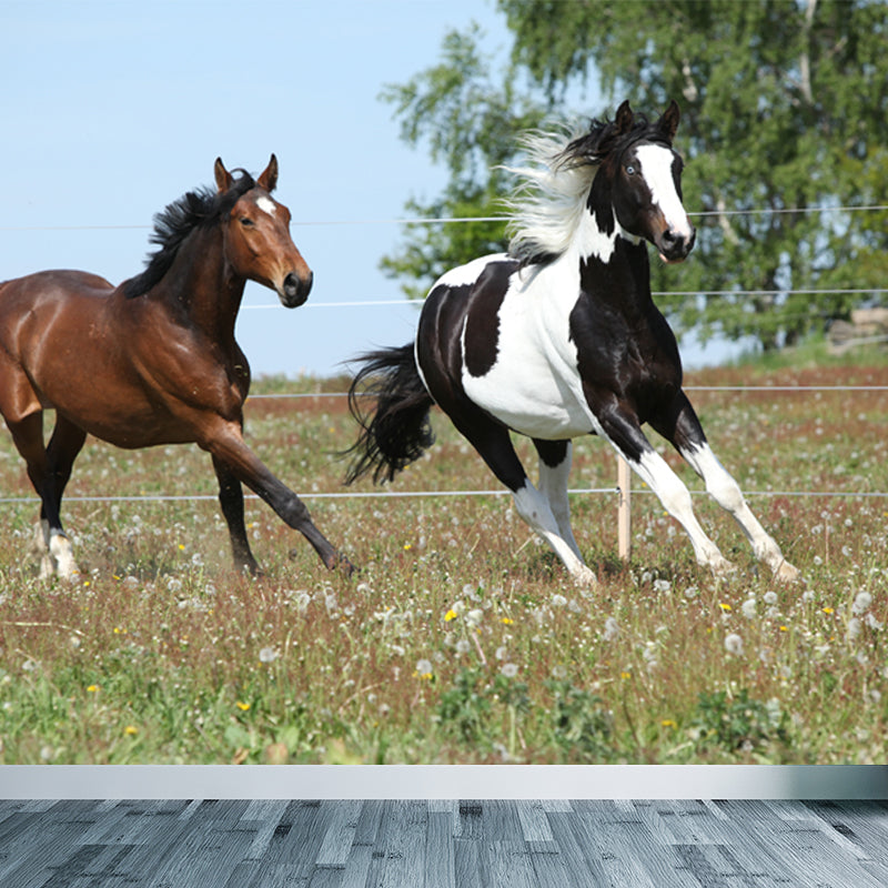 Vivolux | Pferde Wandtapete Dunkle Farbe Moderner Stil Wandverkleidung für Jungenzimmer, Maßanfertigung