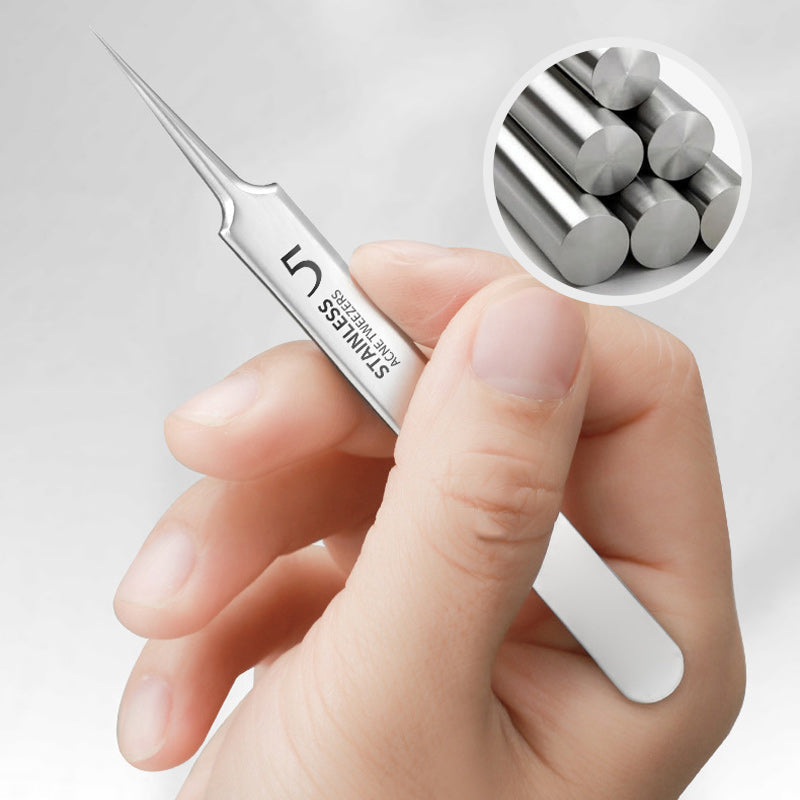 - Die Extraktionspinzette besteht aus hochwertigem Edelstahl, dem gleichen Material, das für chirurgische Skalpelle verwendet wird, und ist für alle Hauttypen, einschließlich empfindlicher Haut, geeignet. Sie ist rostfrei, korrosionsbeständig, leicht zu reinigen und für eine lebenslange Anwendung konzipiert.
