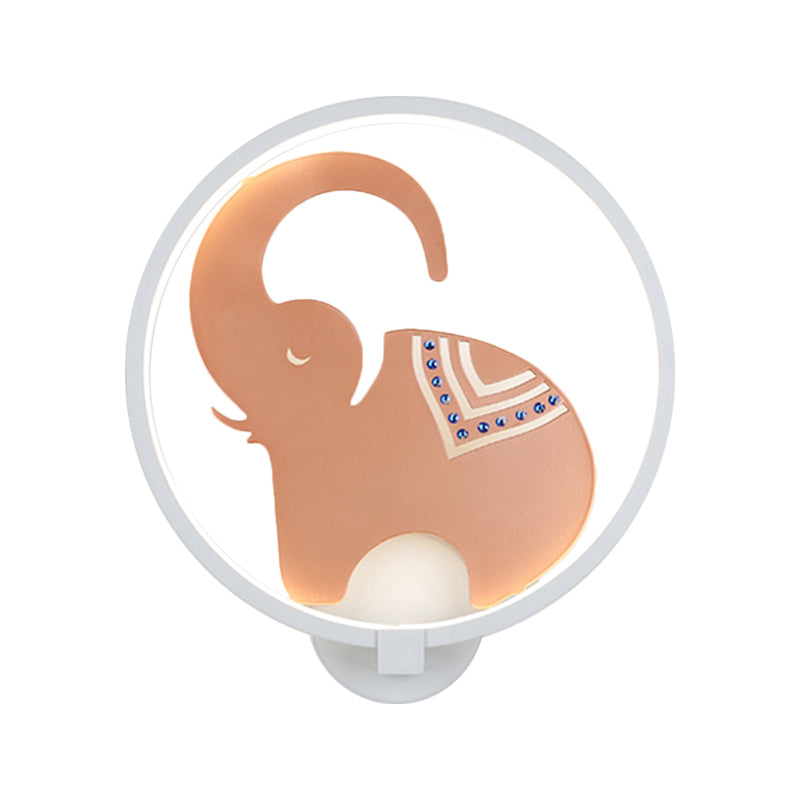 Vivolux | Postmodern Stil Zirkuläre Metallische Wandlampe LED Elefant Wandbeleuchtung Fixture in Weiß-Rot/Schwarz-Rot/Weiß-Gold für Schlafzimmer, Warm/Weiß Licht