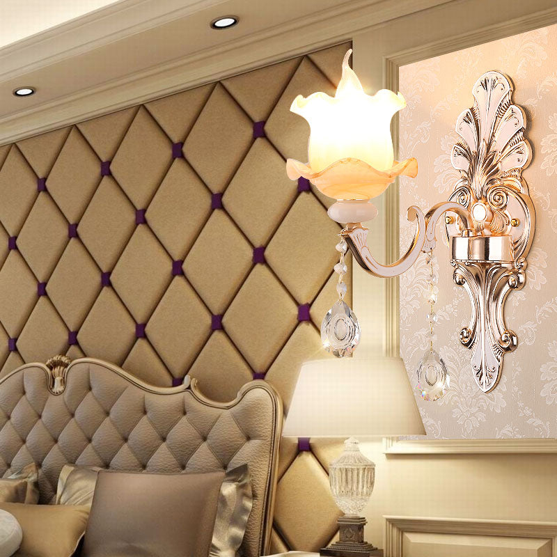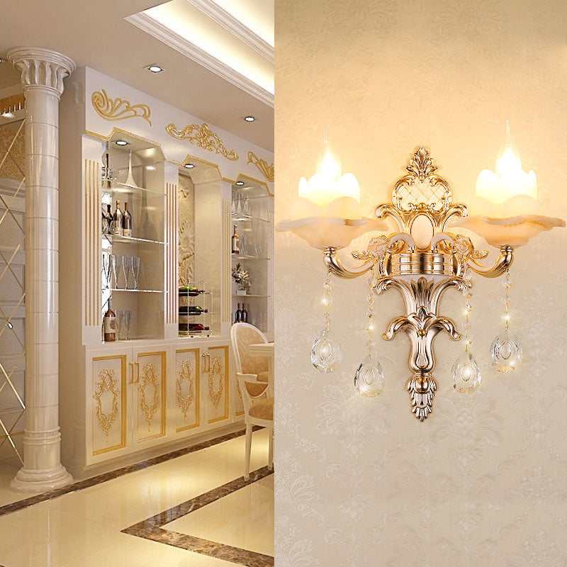 Vivolux | Retro Bud Wandlamp Rimpelglas Wandverlichting met Kristal Draperen in Verouderd Zink