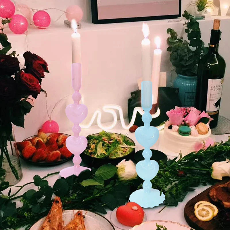 Vivolux | Retro Taper Kerzenhalter Rote Herzform Glas Kerzenständer Hochzeit Tischdekoration Zuhause Party Glas Vase Dekor