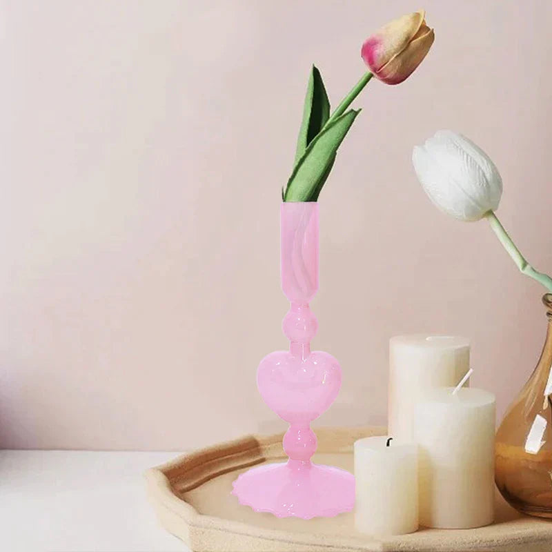 Herzförmiger Retro Taper Kerzenhalter aus Glas in Rot - Perfekt für Hochzeiten, Tischdekorationen und Feiern
