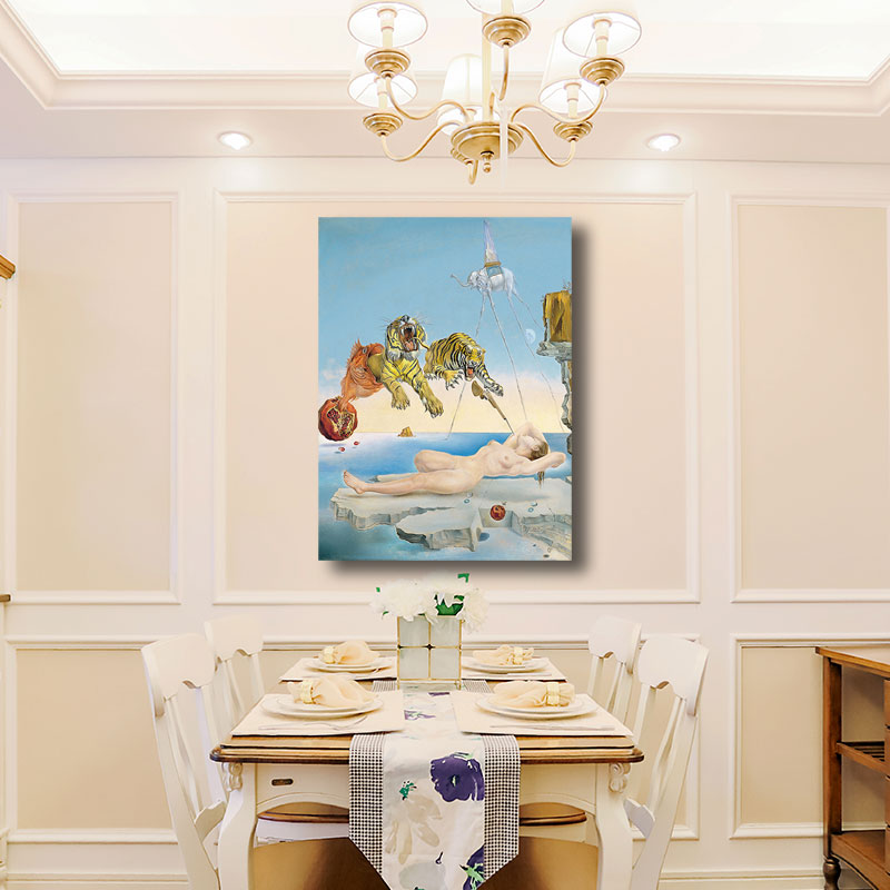 Vivolux | Salvador Dali Tiger Gemälde Surrealismus Texturiert Wohnzimmer Wandkunst Dekor in Blau