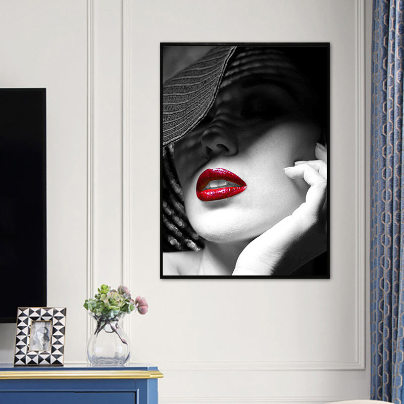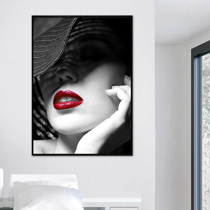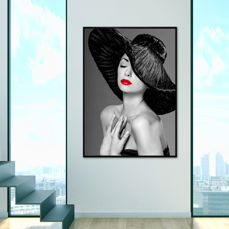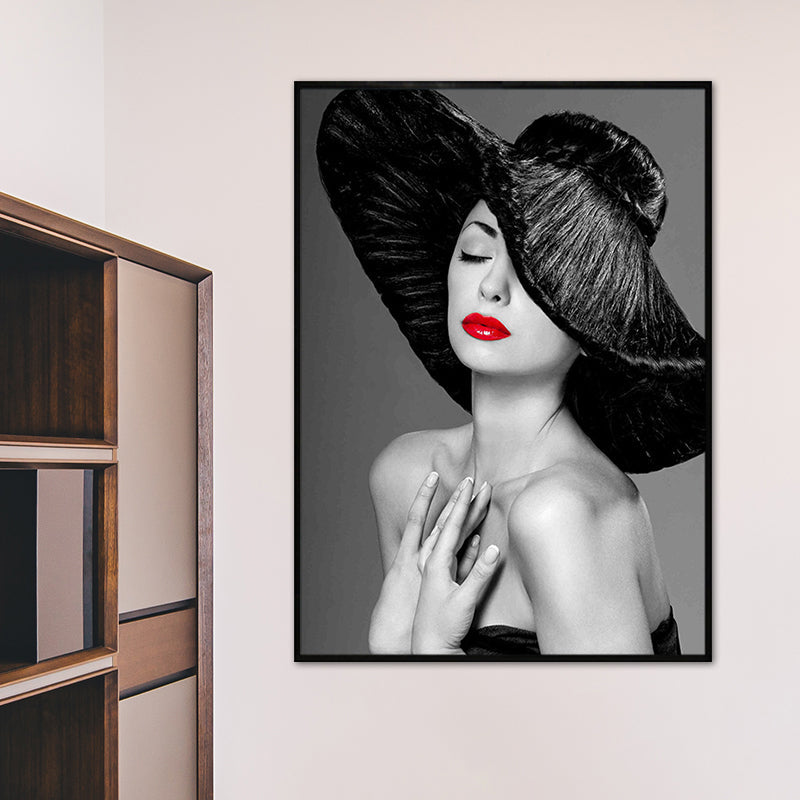 Vivolux | Weiche Farbige Vintage-Leinwand-Mädchenmalerei mit Hut für das Esszimmer, mehrere Größenoptionen