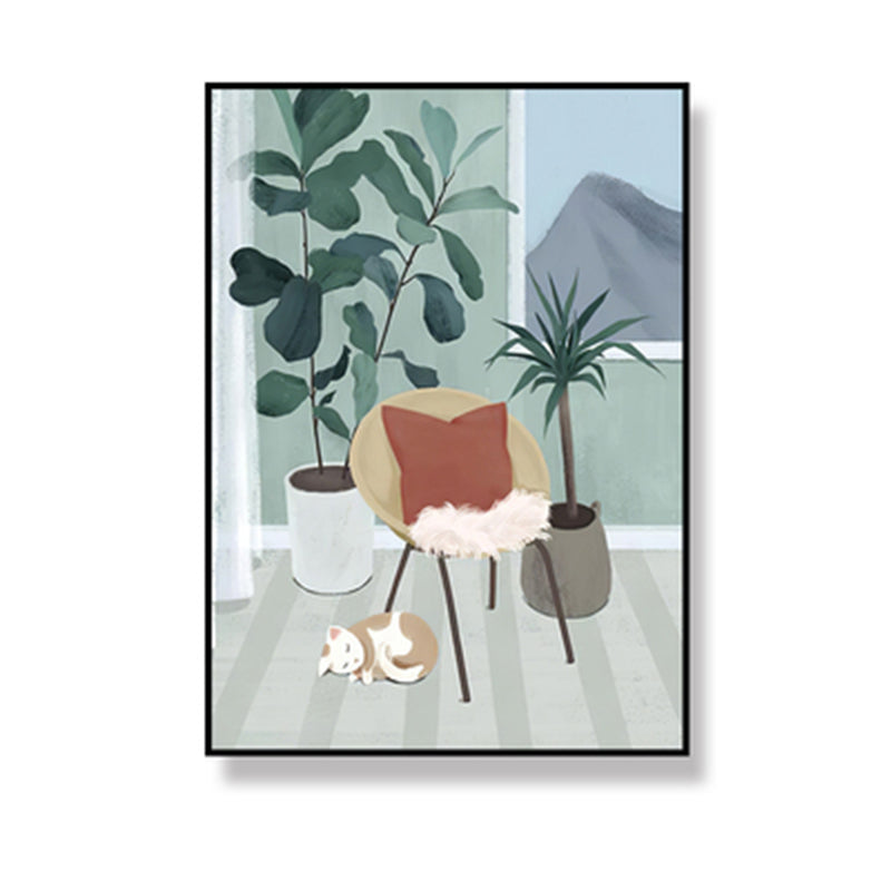 Vivolux | Skandinavische Stillleben Wanddekoration Leinwand Texturiertes grünes Leinwandkunst für das Wohnzimmer