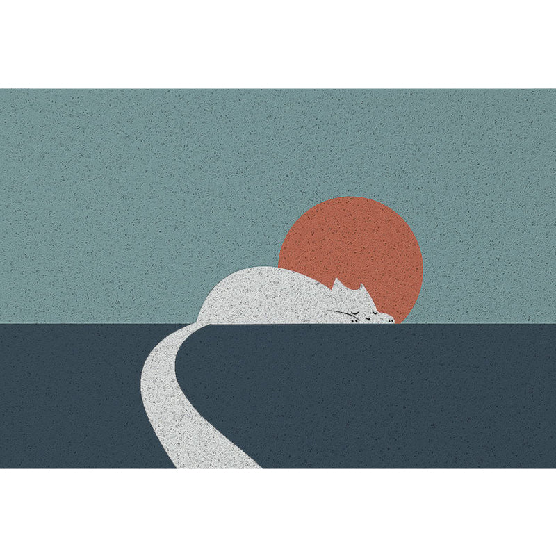 Vivolux | Süßes Katzenmuster Teppich mit Sonne Grüner Kinderteppich Vinyl Waschbar Rutschfester Bereichsteppich für das Kinderzimmer