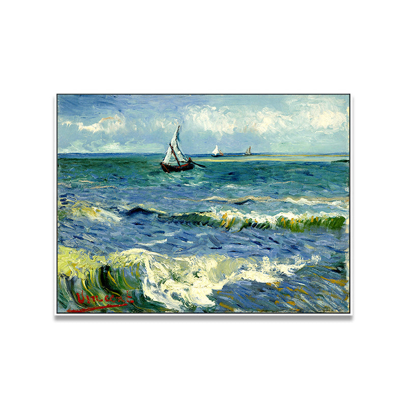 Vivolux | Schiffe, die auf Wellen segeln, Gemälde Blau Leinwand Wandkunst Druck für Wohnzimmer, Textur