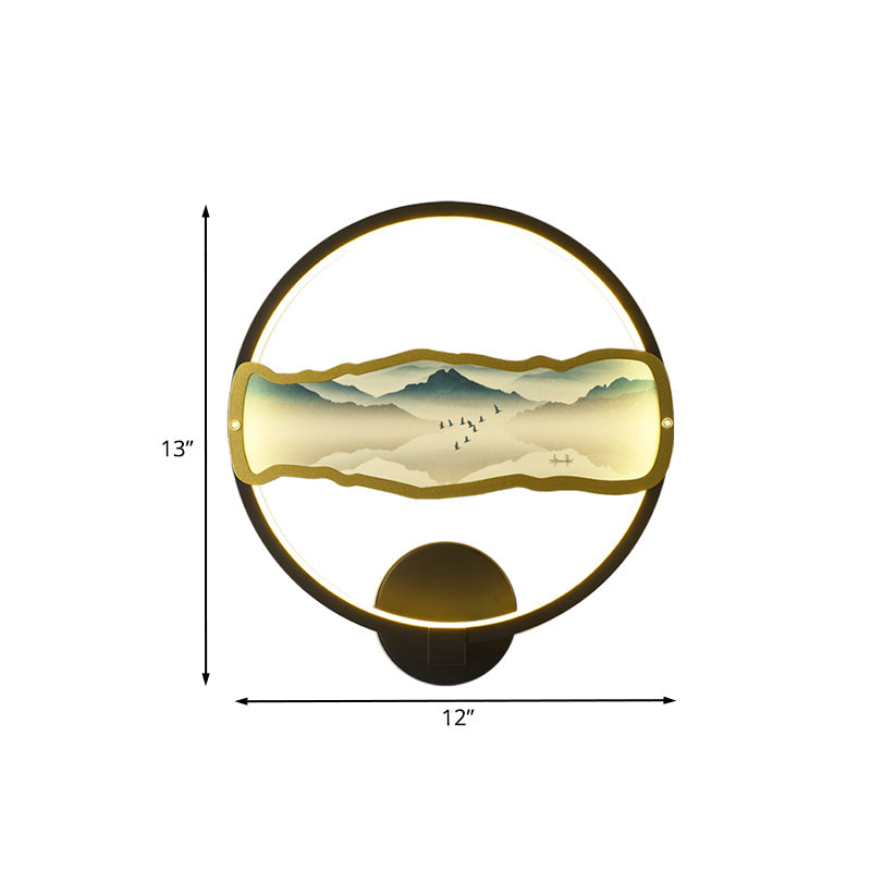 Vivolux | Schwarzes zirkuläres Bergmuster Wandbeleuchtung Asiastil LED Metallic Wandbeleuchtung Idee, Warm/Weißes Licht
