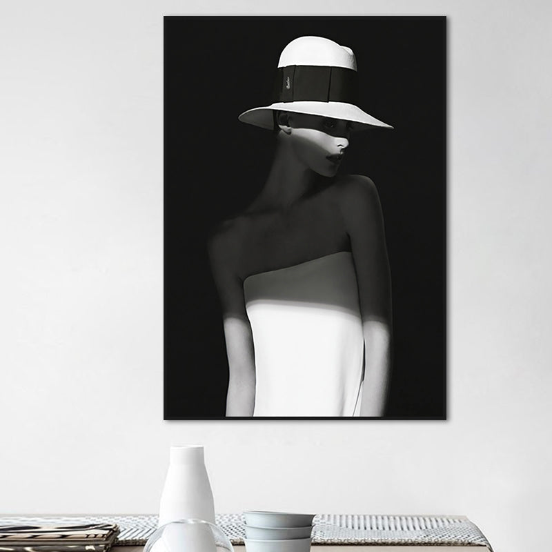 Vivolux | Zwarte Dame met Hoed Doekdruk Woondecoratie Victoriaans voor Grote Ruimte Wandkunst, Meerdere Maatopties