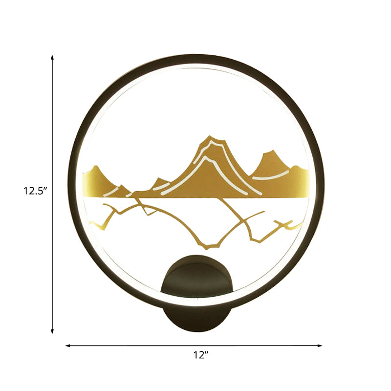 Vivolux | Schwarze runde Wandmontage-Leuchte im asiatischen Stil LED Acryl Wandmalerei Lampe mit Bergmuster