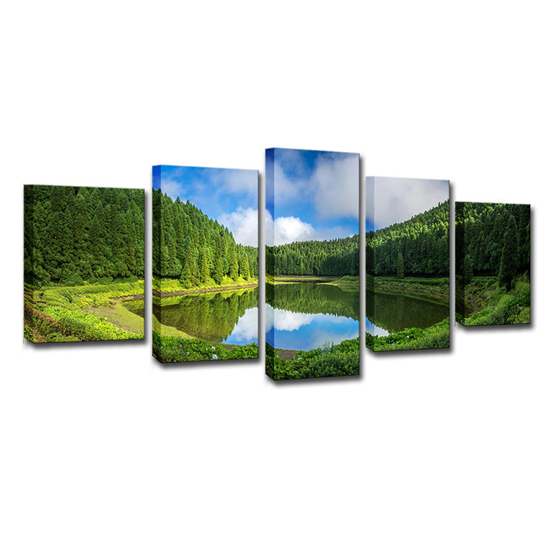 Vivolux | Siehe und Kiefern Bäume Leinwand Mehrteilig Modern Familienzimmer Wandkunst Dekor in Grün