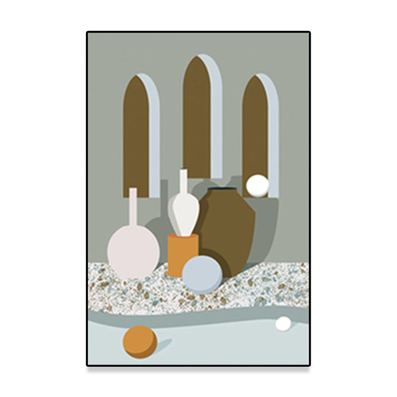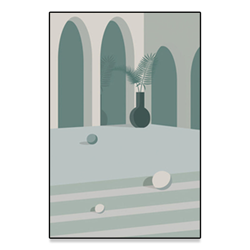 Vivolux | Skandinavische Menschen Kunstdruck Gebäude Raum Pastellfarbe Eingewickelte Leinwand für Wohnzimmer