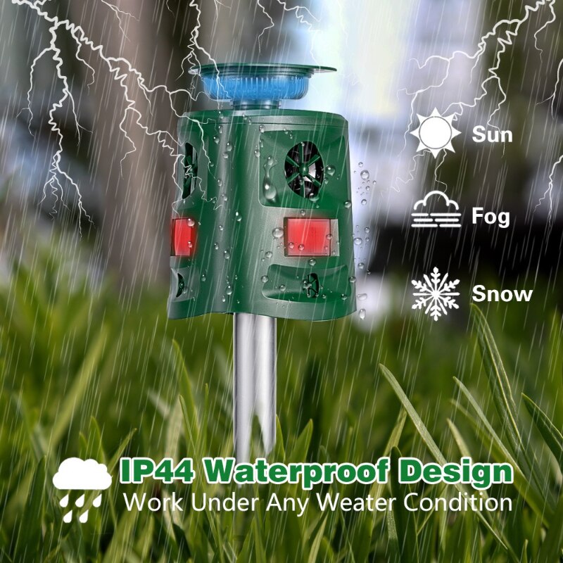 Effiziente und umweltbewusste Tierabwehr durch Solarenergie: Stört es Sie, dass Tiere Ihr Zuhause und Ihren Garten betreten und beschädigen? Dieses Tierabwehrsystem für den Außenbereich ist tierfreundlich und sicher. Es verwendet Ultraschallwellen, die ausschließlich von Tieren wahrgenommen werden, und stellt eine umweltfreundliche Lösung mithilfe von Solarenergie dar. Der integrierte Bewegungssensor schützt sowohl Ihre Familie als auch die Umwelt.