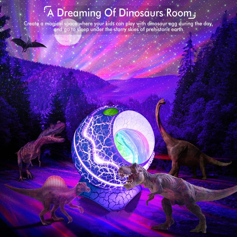 - Weißes Geräuschgerät - Der Nachtlichtprojektor enthält 19 beliebte Geräuschkulissen, die entspannend und beruhigend wirken, während Sie versuchen, einzuschlafen oder während der Meditation. Die sanften Klänge der Geräuschmaschine kombiniert mit dem für Babys geeigneten, faszinierenden RGB-LED-Nachtlicht schaffen ein unvergessliches Erlebnis, das jeden in einen ruhigen Zustand versetzt. Sowohl Kinder als auch Erwachsene können dieses unterhaltsame und vielseitige Dinosaurier-Ei-Sternenlichtprojektor für eine erholsame Nachtruhe genießen.