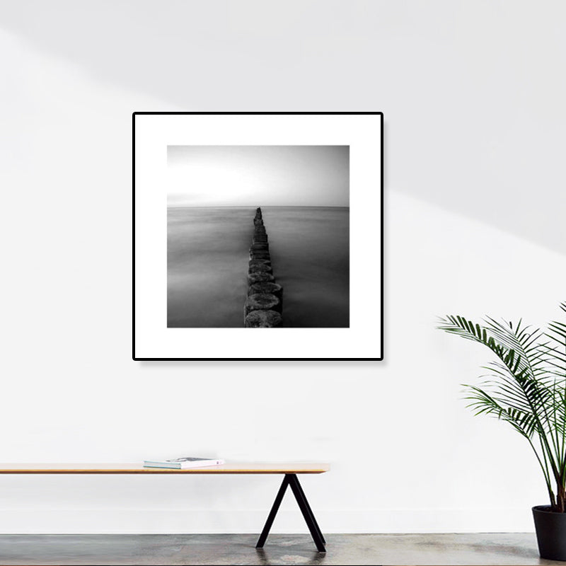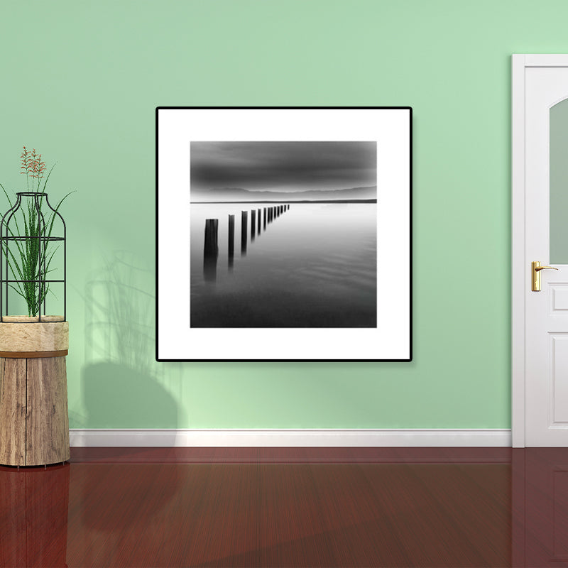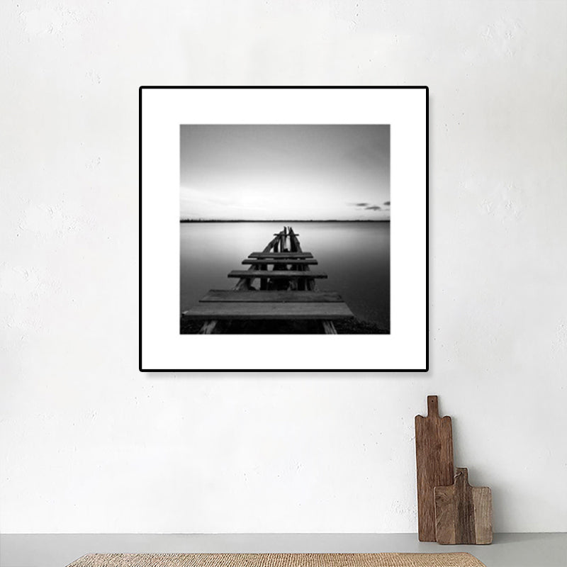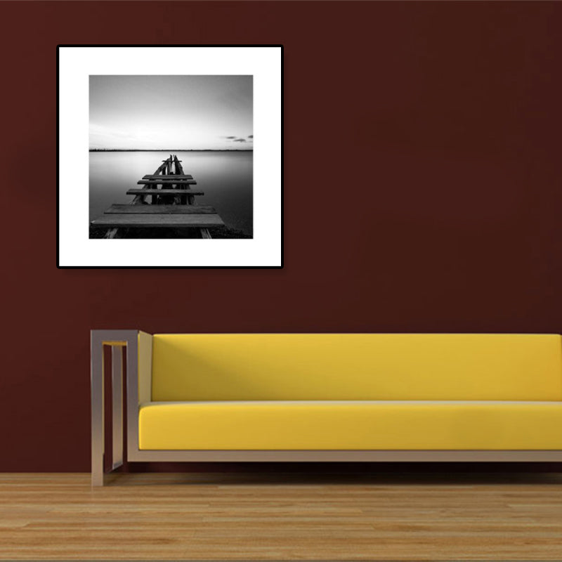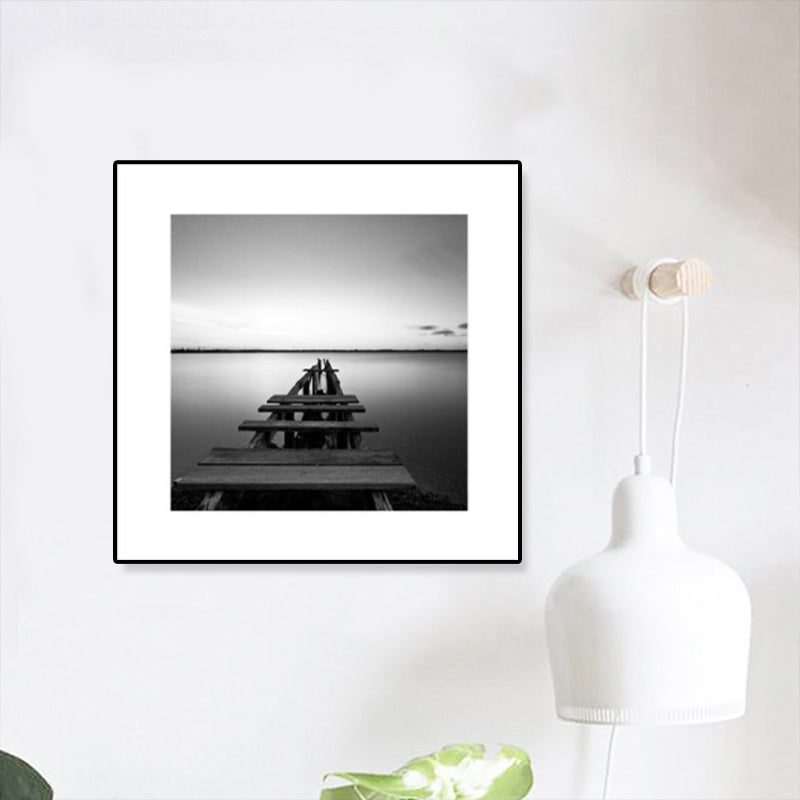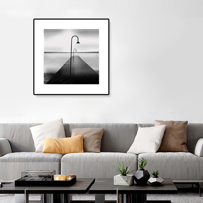 Vivolux | Texturiertes Brückenwandkunst-Dekor Modern Nostalgische Landschaft Leinwanddruck in dunkler Farbe