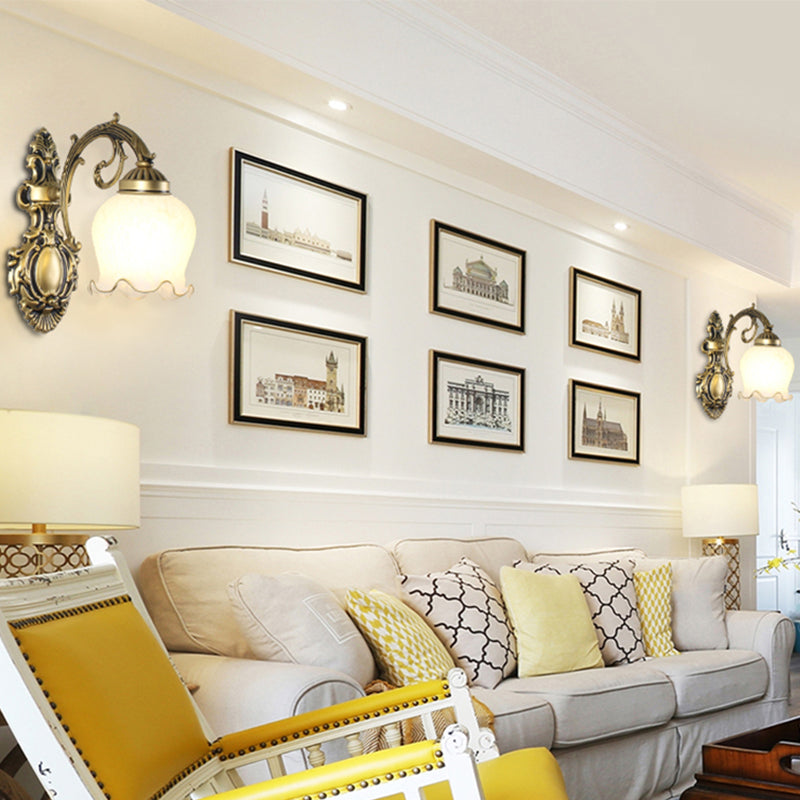 Vivolux | Traditionale Blumentapete Wandlicht Frost Glas Wandlicht Leuchte mit Rüschensaum für Flur