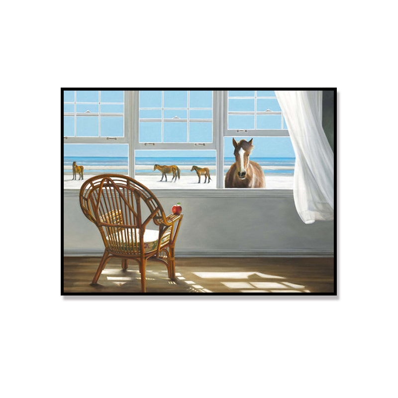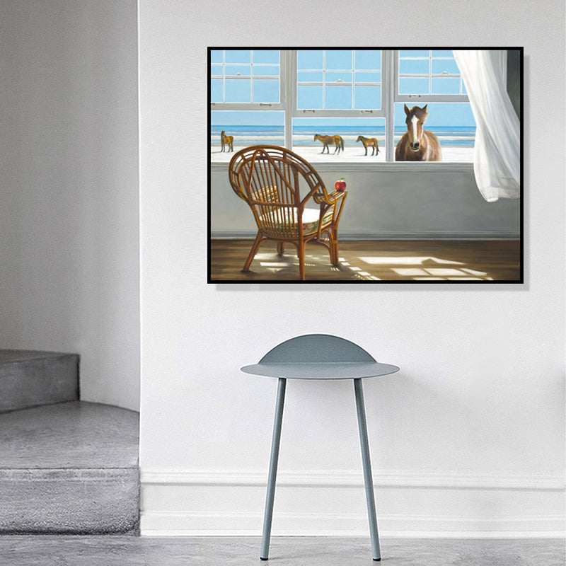 Vivolux | Traditionelle Leinwand Wandkunst in Weiß Strandblick vom Fenster Malerei für das Wohnzimmer
