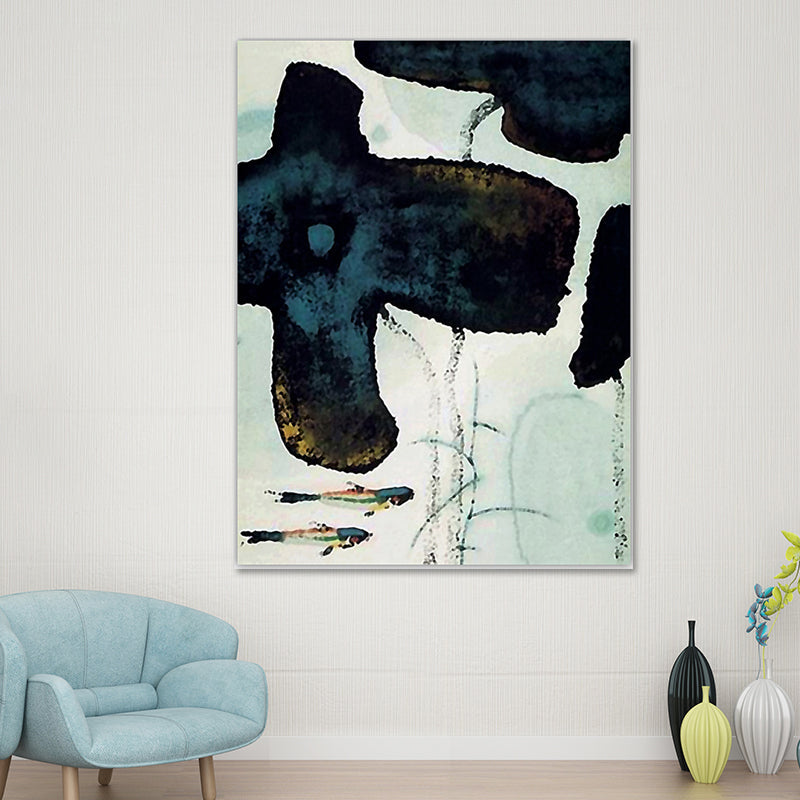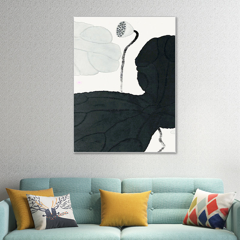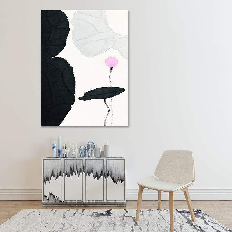 Vivolux | Traditioneller Lotus-Teich-Leinwanddruck Dunkle Farbe Texturierten Wandkunst Dekor für Wohnzimmer