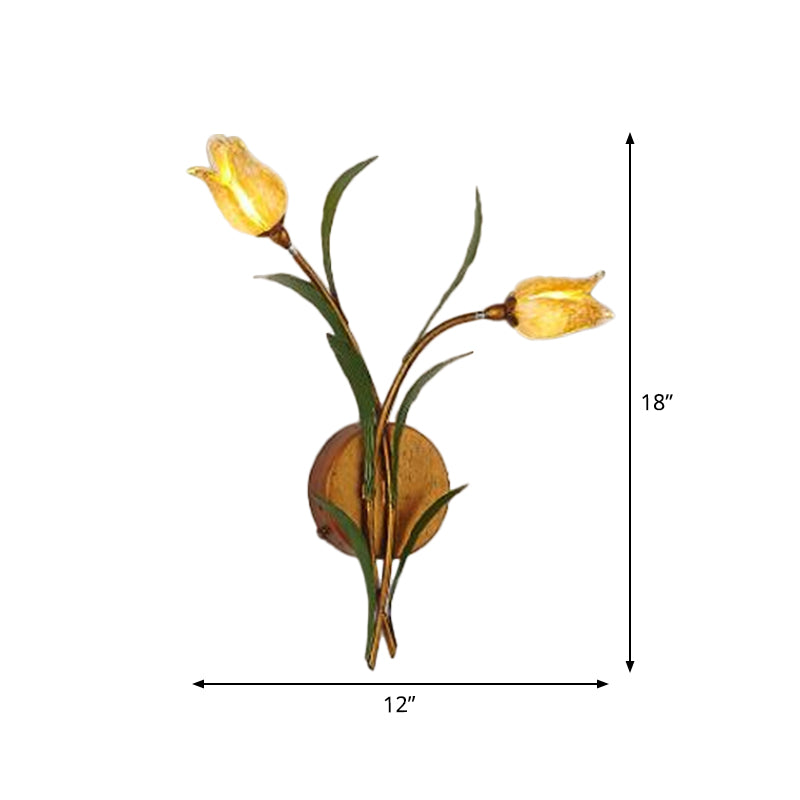 Vivolux | Tulpenboeket Slaapkamer Wandlamp Vintage Beige Glas 2/3/5 Hoofden Antiek Messing Wandgemonteerde Nachtlamp