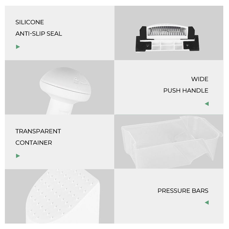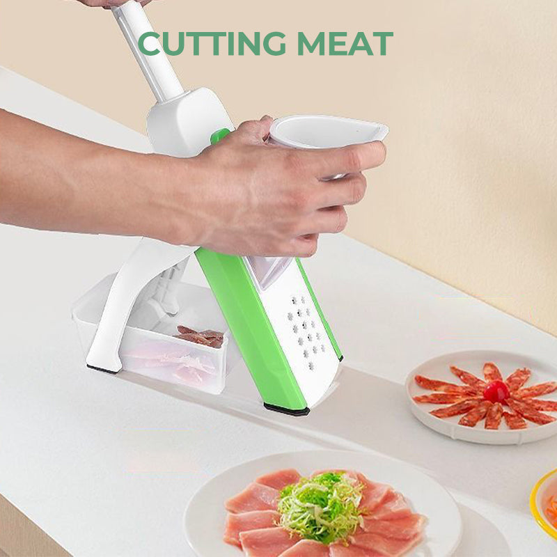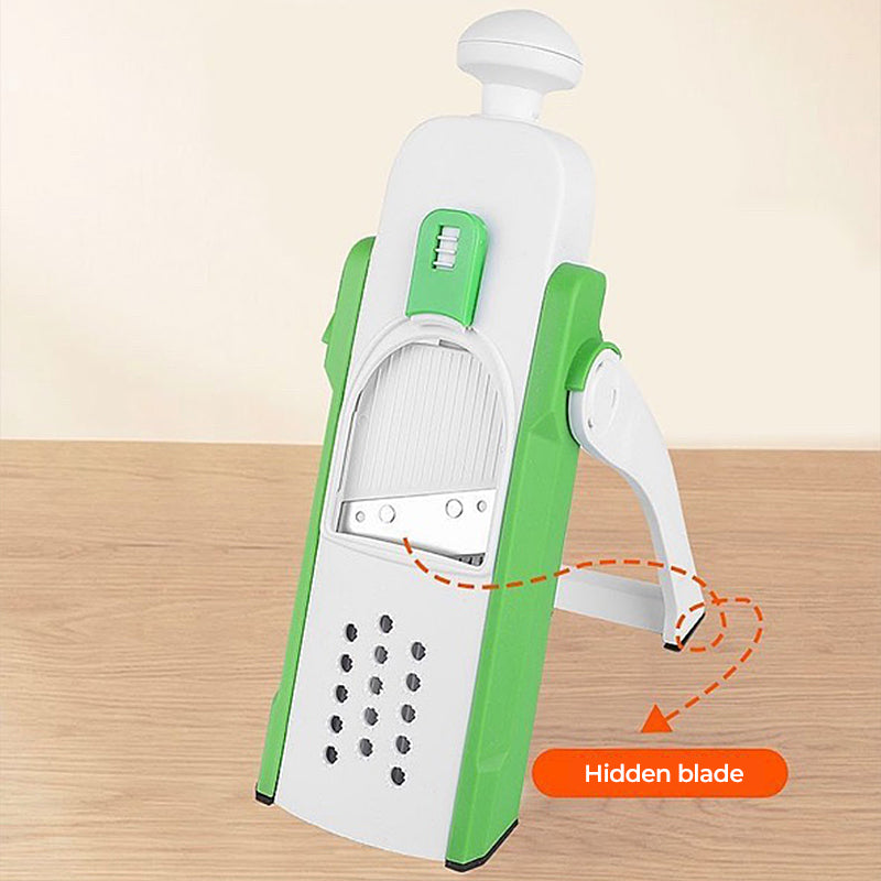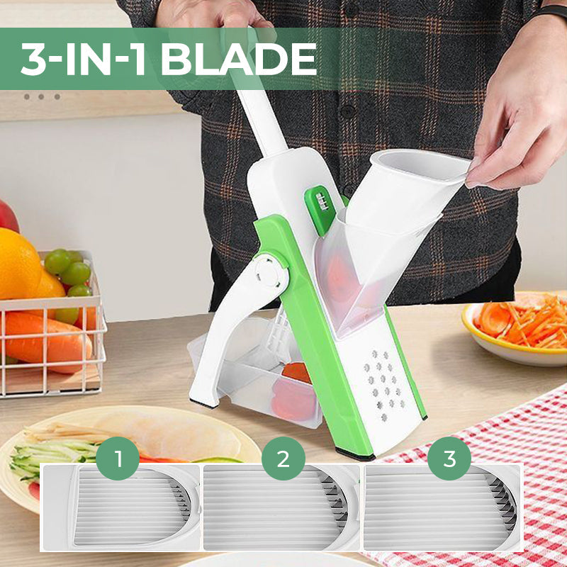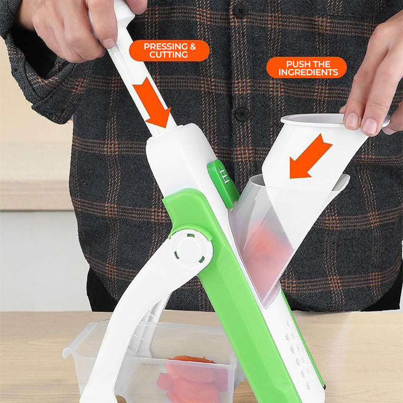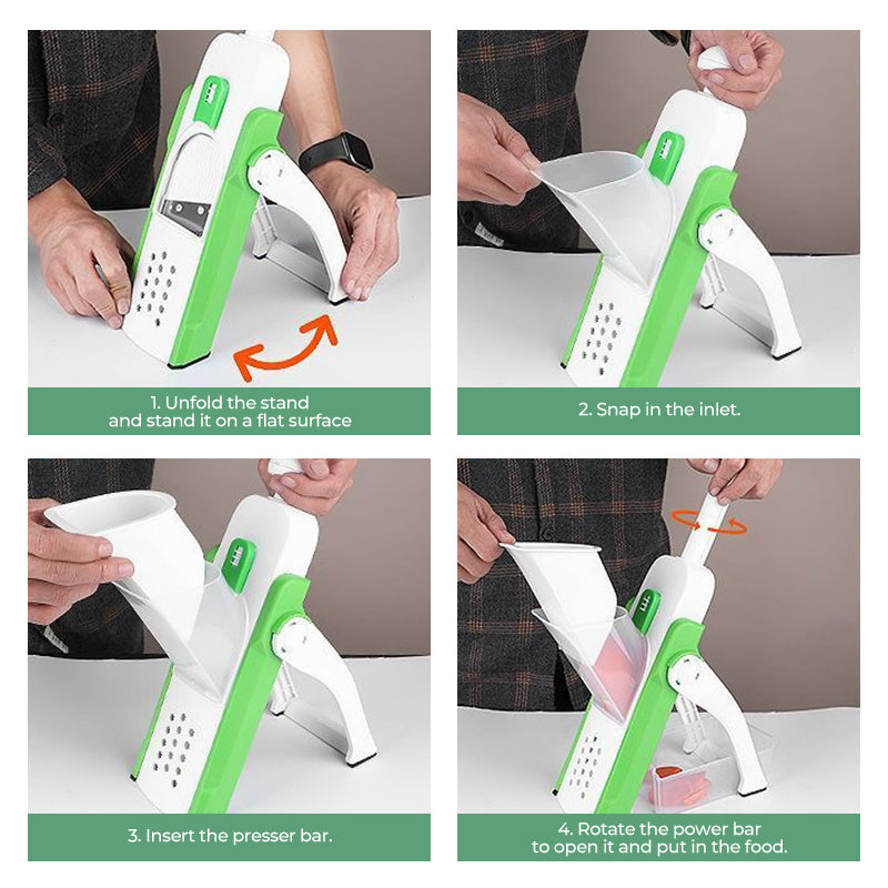 SICHERHEIT:Das innovative Design gewährleistet, dass Ihre Hände nicht in die integrierten Klingen gelangen, wodurch diese Mandoline die sichere Wahl für gleichmäßige Schnitte ist.