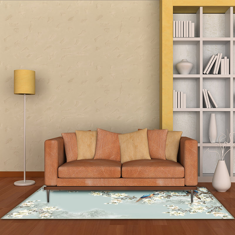 Vivolux | Vintage Floral Pattern Teppich mit Vogel Hellgrün Polyester Teppich Maschinenwaschbar Rutschfester Teppich für Schlafzimmer