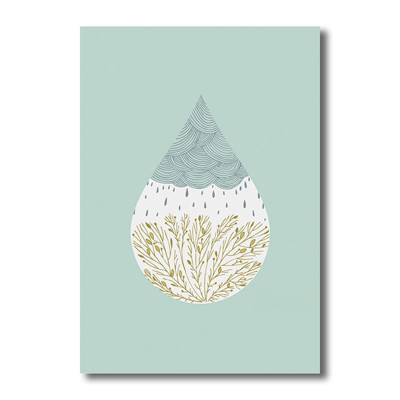 Vivolux | Weiße Regentropfen und Pflanzen Leinwand dekorativ nordisch für das Wohnzimmer Wandkunst Dekor