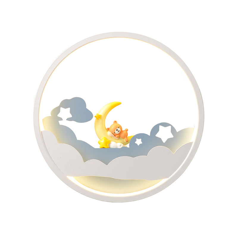 Vivolux | Witte Wolk Wandlamp Verlichting Hedendaagse LED Acrylaat Ring Wandlamp Fixture met Meisje/Bear/Kleine Monnik Deco
