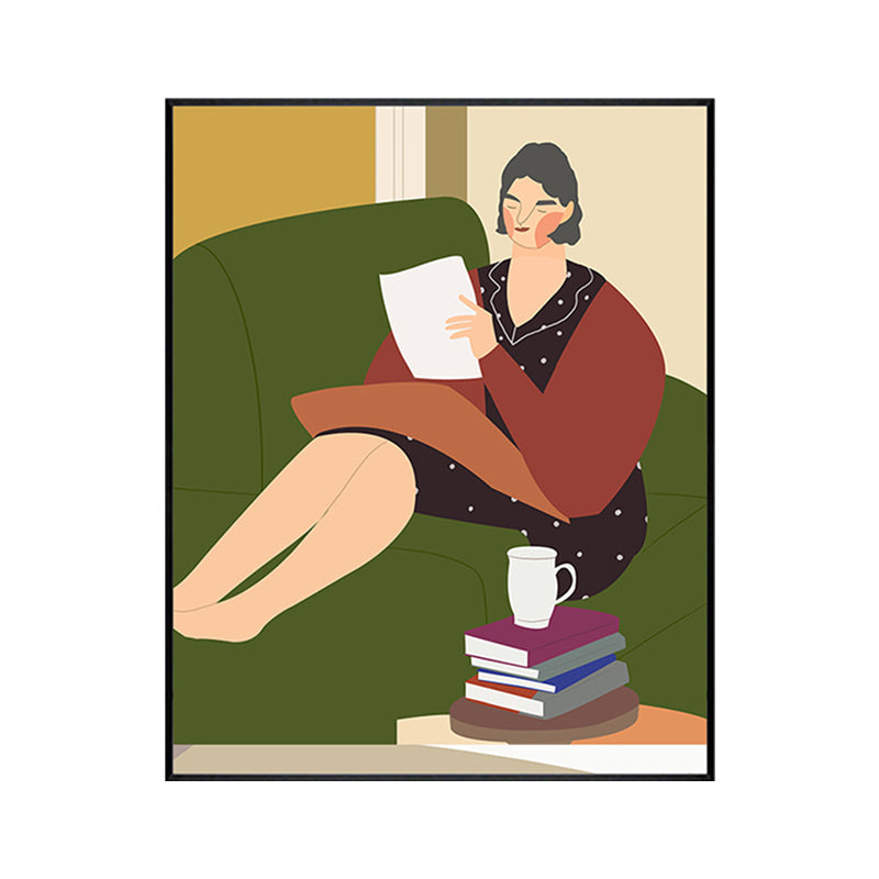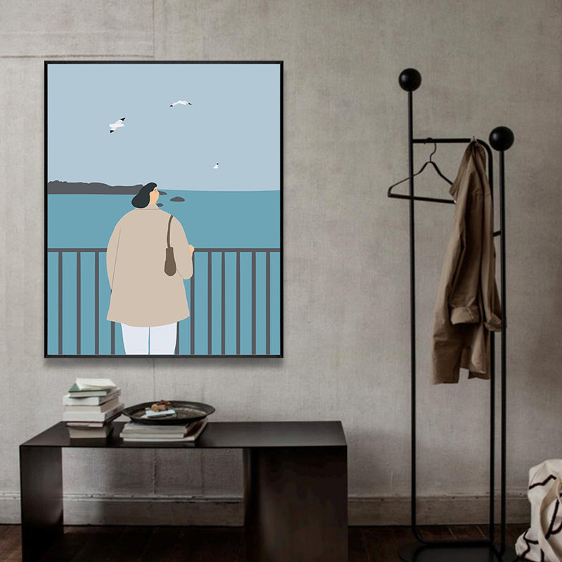 Vivolux | Zeichnung Mädchen Tag Wandkunst Funky Trendige Figur Wanddeko in Pastellfarbe für das Wohnzimmer